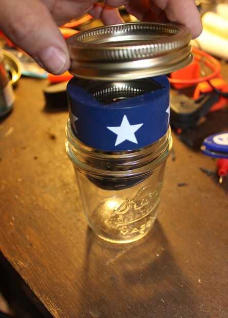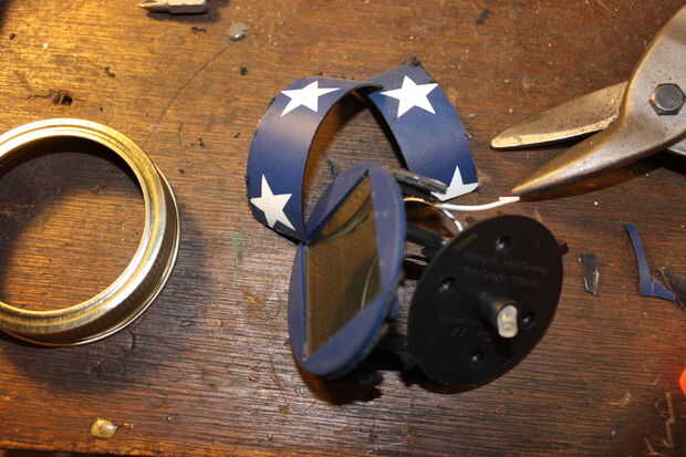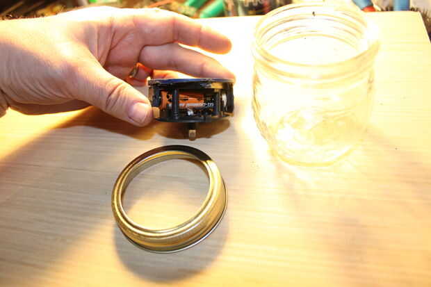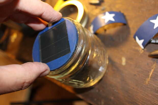 Menor - aquí porque la solar panel sí mismo es tan pequeño se deslizaría por la jarra "banda". Tuve que cortar un agujero en la tapa y luego pegue la luz en la tapa.