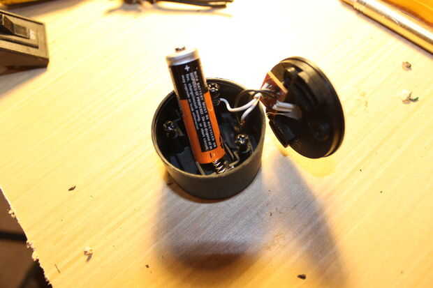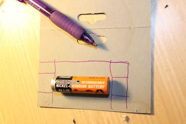 Otro problema con la luz de tamaño más pequeño: la batería en el interior era un 1/2 AA... parecía un AA solamente mitad de la longitud. No pude encontrar un reemplazo, así que hice mi propio soporte de la batería de repuesto de cartón y utiliza el tamaño AA... vea las imágenes de abajo.