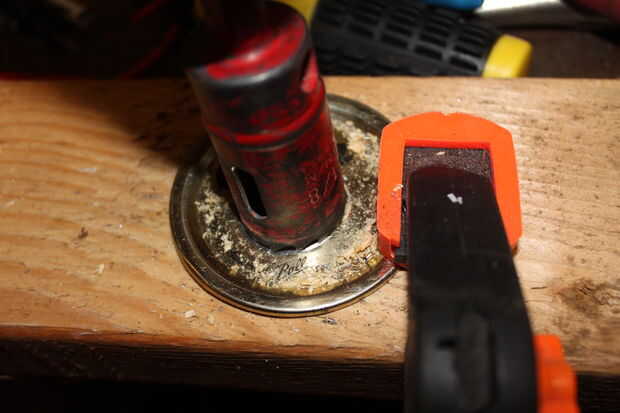 Esta luz de tamaño particular trabajado realmente bien porque no era necesario modificar el cableado, corte de la tapa o incluso pegado de la tapa. Encontré estos en Menards por $1.. .think mejor volver por más!