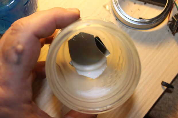 También experimenté con el uso de trozos de espejo y CDs en la parte inferior de la jarra. Es fácil pegar piezas allí y creo que ayudó a hacer la luz un poco más brillante.