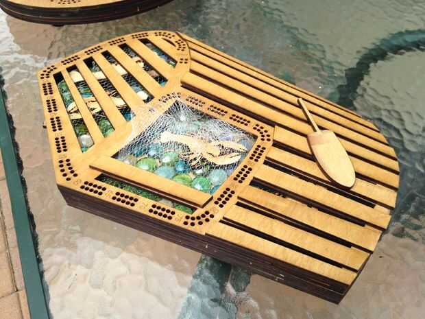 En la foto #3: ejemplo muestra el tablero de cribbage trampa de langosta. Contiene 7 capas total, 6 cortes completos y una capa superior de acentos. PIC #4 muestra cómo las capas todos apiladas juntos.
