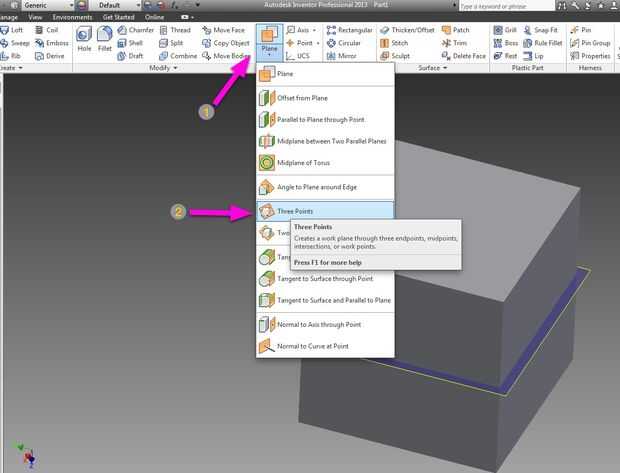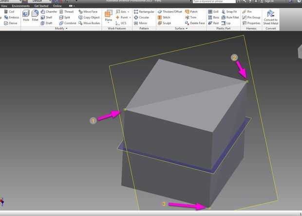 Crear tetraedro a partir de un cubo en Inventor (6 / 10 paso)