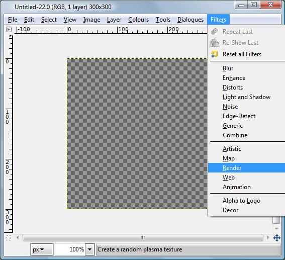 Haga clic en filtros > RENDER > nubes > PLASMA