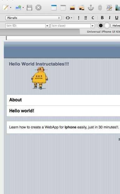 Nota- te propongo como un ejercicio para cambiar la palabra "Hola mundo" por su nombre, asegúrese de "salvar" el cambio. En el siguiente paso que vamos a ejecutar nuestra aplicación web en el simulador para ver su aplicación.