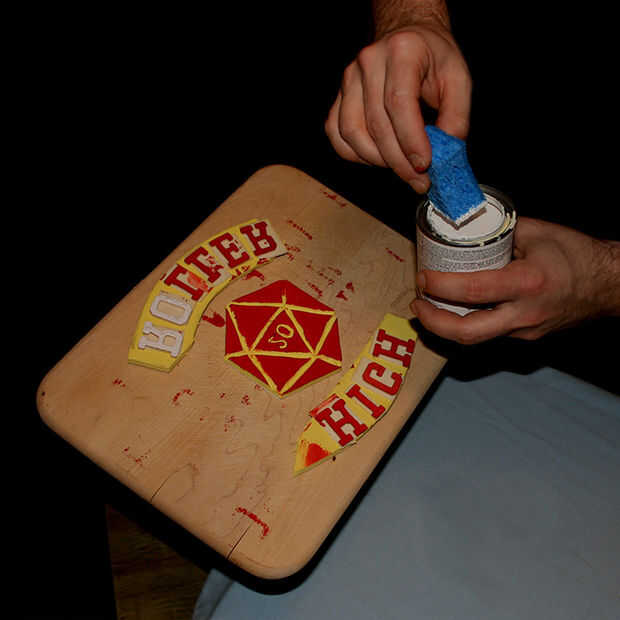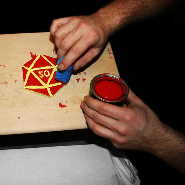 Utilice trapos o Camisas viejas para varios intentos antes de poner su camisa favorita debajo de la prensa. A tener una idea de lo difícil a la prensa, la cantidad de pintura o tinta a utilizar y cómo aplicar la pintura a la prensa. Probamos usando toallas de papel y pinceles para sumergir en la pintura y luego aplicar para el "sello" pero encontramos que una esponja cortada en trozos más pequeños funcionados muy bien - para aplicación tanto para absorber exceso de pintura que puede recoger en las áreas negativas de la estampilla.