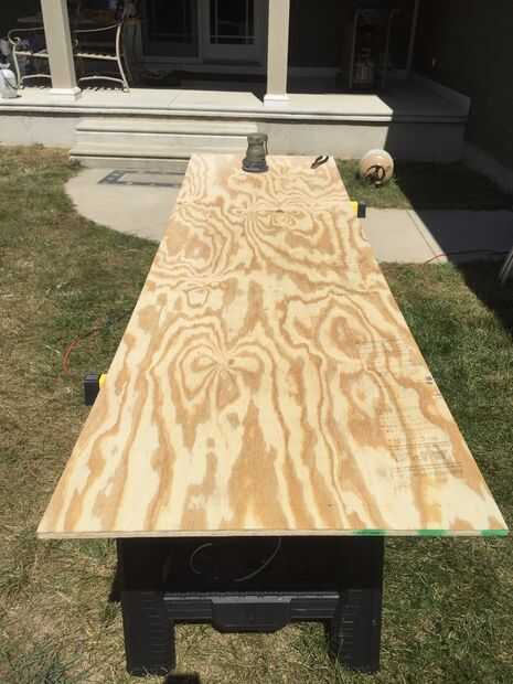 • Empieza con el corte 4' x 2' pieza de madera contrachapada y cortarla por la mitad exactamente 24" del final. Esto te dará dos piezas para trabajar en lugar de tener una hoja grande. (Visto en fotos anteriores)
