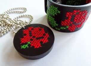 Collar madera punto de Cruz