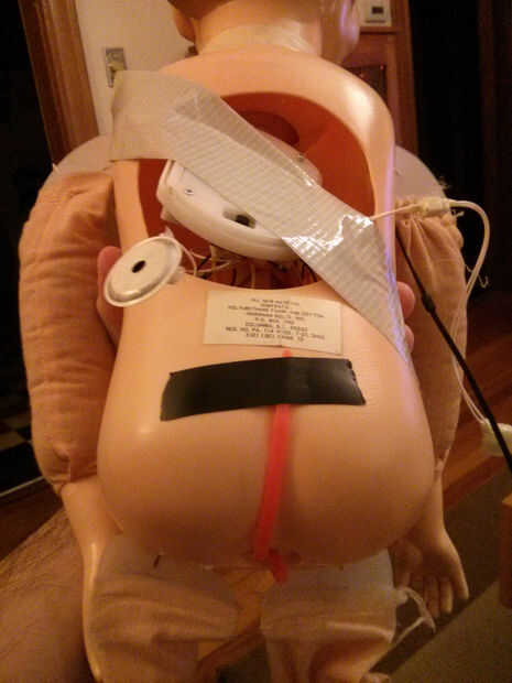 He dicho antes que la cabeza estaba conectada a un enchufe en la parte inferior. He acabado rasgando este enchufe hacia fuera para el motor (se pegan demasiado lejos para arriba en la cavidad del cuerpo). Ahora el motor gira libremente y la cabeza no es móvil. Usé un par de abrazaderas de plástico alrededor de la base del motor y alimenta a la parte inferior. Me encontré con uno para arriba el frente y la otra hacia la parte posterior y había pegado al torso. Ahora queda poner el motor y la cabeza se mueve.