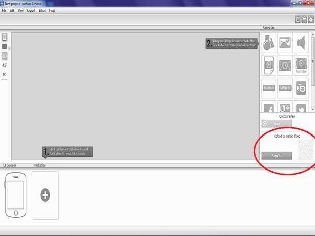 Después de que has de instalar todas las cosas empiezan a creador de Metaio. En creador de Metaio crear un canal en la parte inferior right(see pic). Antes de hacer tu propio canal de te pedirá para inscribirse. Inscribirse por ID que has usado descarga creador de Metaio. Crear tu propio canal. Después de hacer tu propio canal haga clic en el código QR y descargar (haga clic en guardar código de QR) en su computadora.