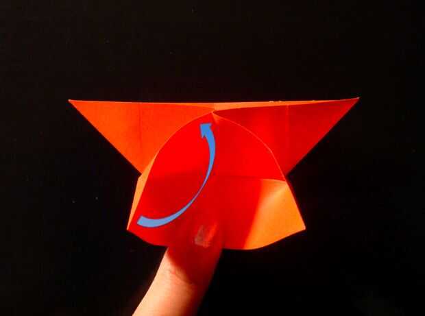 Cumplir con la parte inferior izquierda el borde a la parte central superior y pliegue la parte del resto. Completar la otra parte, así
