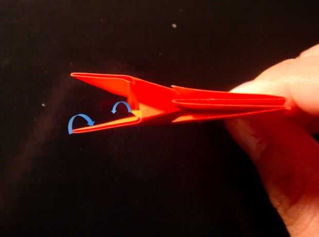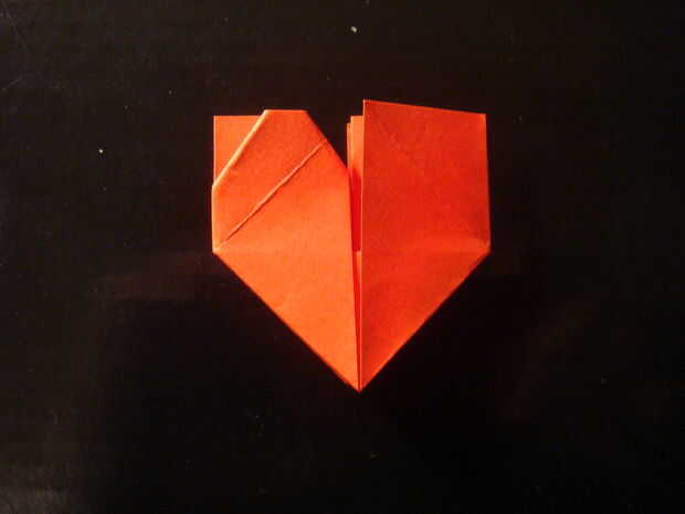 Pararse el corazón y el centro dentro del doblez. Hay dos capas de ellos papel y necesidad de doblarlas juntos. Además, dobla la parte exterior dentro.