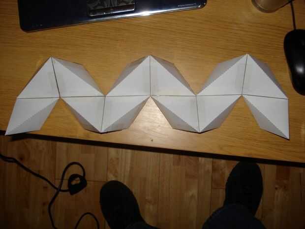 Tomar cada forma plana y montar en pirámide, una vez que tengas 12 de estas formas que puede empezar a montar en el HyperQBS.