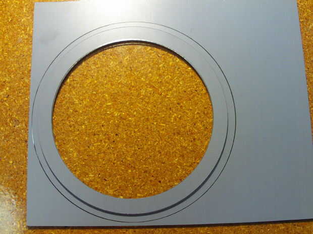 Mi obra era 6inches en diámetro, tuve ese disco de corte, pero mantienen el resto. Utilice esta pieza con el agujero grande para cortar un anillo externo que es exactamente 2inches mayor en diámetro.