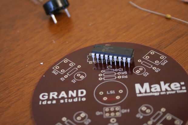 Poner el IC en tablero con U poco en el IC que empareja la U en el tablero. (Ver foto)