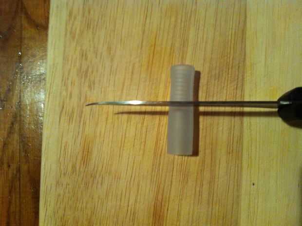 Porque quería crear un lápiz que no se destruyen tan fácilmente, puse en el último par de rejillas. Por lo tanto, tuve que cortarlo (ver primera imagen) y luego lo pongo solo. Esto puede sonar fácil, pero no es. Una red en tres capas de la red es un trabajo realmente duro. Tienes que aflojar las rejillas antes de intentar poner en, de lo contrario tus manos necesitará alrededor de una semana para recuperar.