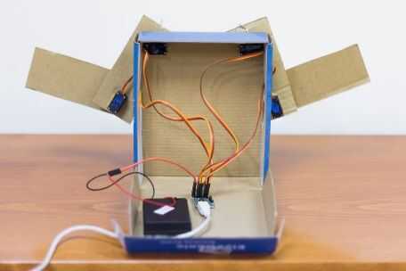 Puede utilizar una caja para ocultar el controlador de motor y servos detrás de él mientras que le permite servir como un soporte para los robots "manos"
