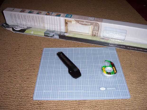 -Un sistema de tonos temporal *. Deben ser del tipo que tiene una cinta adhesiva en un extremo. Compré los tonos de Redi que son "oscurecimiento" para mayor privacidad. Estos me costó sobre $6 cada uno.