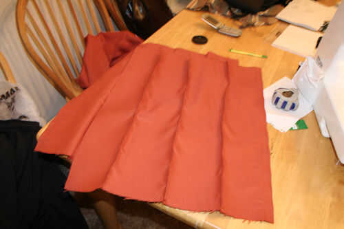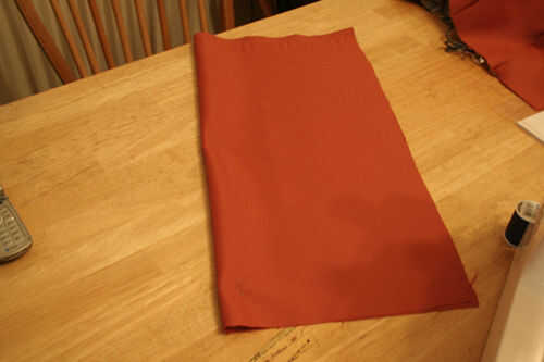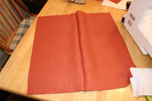 Entonces llevaron tanto de los otros lados y foled a la mitad. Hice lo mismo con los pliegues. Cuando terminé, tenía una pieza cuadrada naranja con cuatro costuras corriendo por la parte delantera.