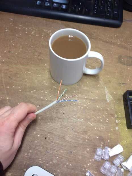 Nota: Algunos cable tendrá un cable de corriente a través de que esta se puede cortar cerca de la vaina externa. A medida que se más experimentados con la fabricación de cables de Ethernet, no necesitará quitar el completos 1.5 pulgadas de revestimiento.