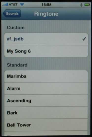 Su tono de timbre nuevo ahora aparece en la lista personalizada. Puntee en esa línea para establecer el tono de llamada predeterminado.