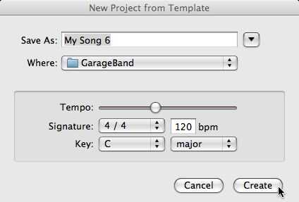 Aparecerá una nueva pantalla. Nombre del artículo lo que te gusta en guardar como:, el guardar la carpeta en donde: y haga clic en crear. No importan el Tempo, la firma y la clave.