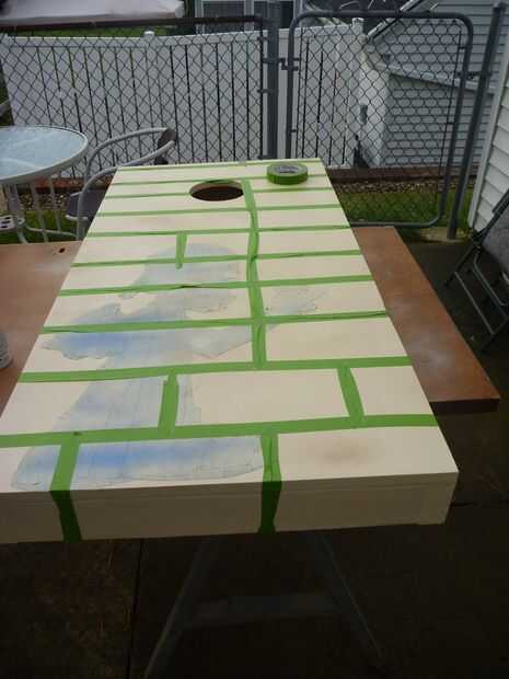Para empezar, había pegado un extremo de la cinta hacia abajo y luego comenzó a trabajar mi camino a través del tablero. Puede doblar un poco la cinta y al mismo tiempo, pellizcar levemente en los laterales en varios puntos a lo largo de la articulación para variar el grosor de la articulación. El más viejo o más áspero los ladrillos que desea emular, la ola más y variedad que desee poner en las articulaciones. Único lo que desea tener en cuenta, es en su mayor parte, las articulaciones se deben ejecutar en una línea de nivel. Pueden ser ondulado pero generalmente nivel, sólo trate de no permitirles acumular o descenso. Si usted necesita para crear a Guía de marcas en los lados de su substrato para el inicio y detener el punto de las articulaciones para mantenerlas a nivel, luego trabaja así. Sólo usé mis globos oculares.
