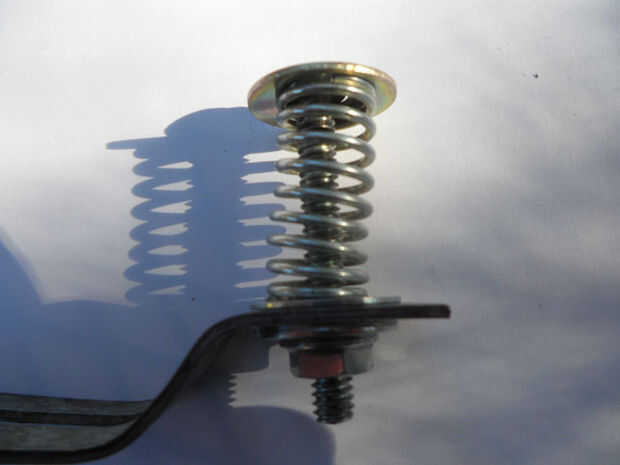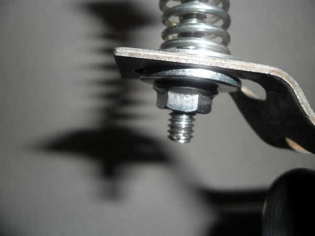 Poner juntos como en la foto de arriba, puede que tenga que añadir un poco de presión al resorte para que usted puede ser capaz de obtener el 1/4" perno y tuerca a.