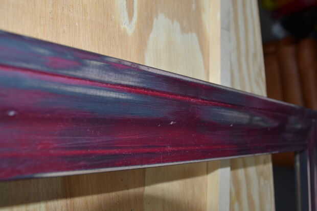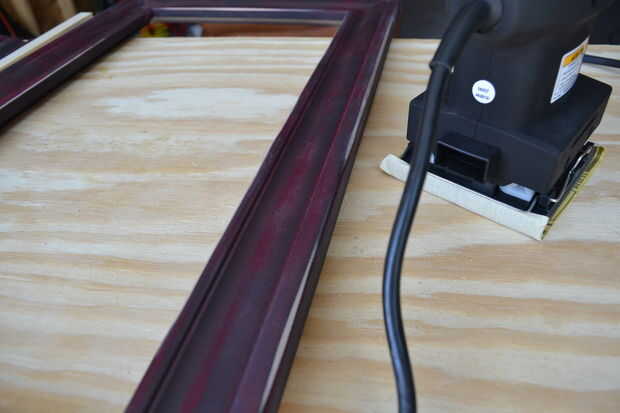 Se realiza el trabajo de sander. Seguir a pequeñas áreas en la superficie del bastidor de la arena a mano. No hay ninguna manera correcta para hacerlo, sólo asegúrese de vigilar a su progreso por lo que sobre no. Una vez que estés feliz con la mirada, cepille el polvo y la pintura con un compresor o una toalla.