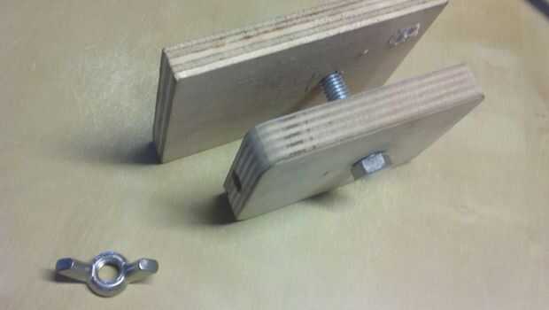 Coge dos piezas planas de madera de desecho, cortar uno lo suficientemente pequeño para caber en el mango
