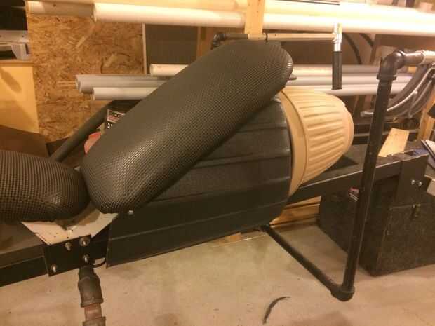 Esto es donde usted puede conseguir creativo con cualquier chatarra vieja que se puede encontrar. Usé un bote de basura de plástico y un soporte de planta como la cubierta del motor debajo del asiento. Luego utiliza la herramienta Dremel para cortar las tapas del manillar y estaba realmente satisfecho con el efecto. Rescatado un freno de mano de una bmx roto encima de la bici de la chatarrería y agregado a los manillares para un toque de realismo. La tapa de plástico de un calentador de piso roto fue atada a la parte inferior de la estructura junto con algunos del pvc más darle algún extra a granel. Por último, extendió un cubo a la parte posterior "árbol" para que se vea como una transferencia de potencia a la rueda.