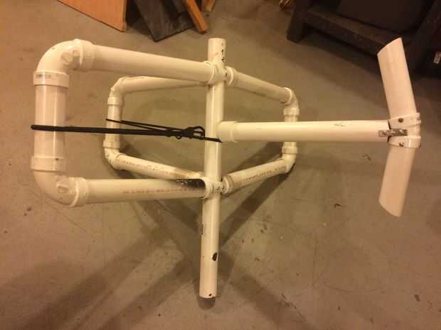 Este es mi primer bosquejo. Quiero hacer un tablero de madera triángulo con cuatro orificios. Tres orificios le dará la estabilidad del trípode mediante la adición de tubos de PVC. En el medio quiero tener dos tubos de PVC. Un tubo más pequeño y uno