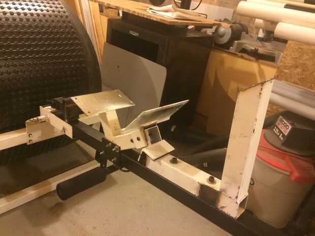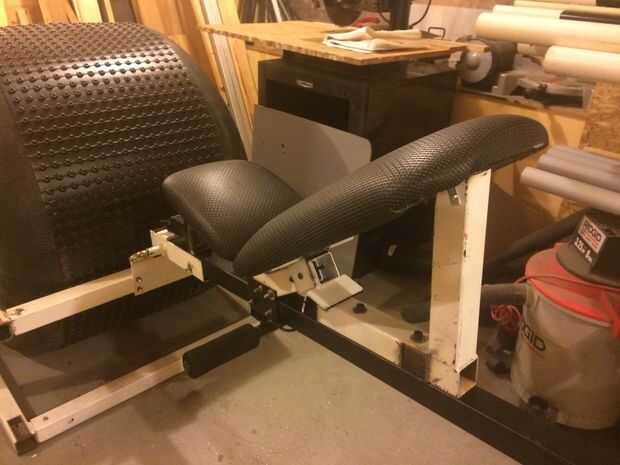 La ventaja añadida sobre el uso de un banco de entrenamiento en el proyecto es que también proporcionó el asiento. Con un poco ensayo y error para encontrar un ángulo cómodo, era relativamente fácil de colocar en su lugar con algunas piezas de chatarra de acero.