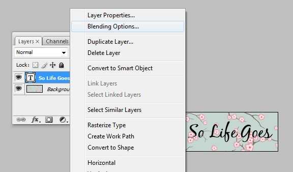 Si desea un borde alrededor de su texto, haga clic en el texto en la pestaña de capas y seleccione Opciones de fusión... Este estilo de capa le permite añadir efectos a su texto (es decir, una sombra, un estilo de degradado a su escritura, etc.). Si quieres que la frontera, seleccione trazo . Si selecciona este diseño automáticamente pone un borde rojo alrededor de su escritura. Va a utilizar un borde de color blanco con el tamaño de 3 px. Esto se puede modificar a su gusto.
