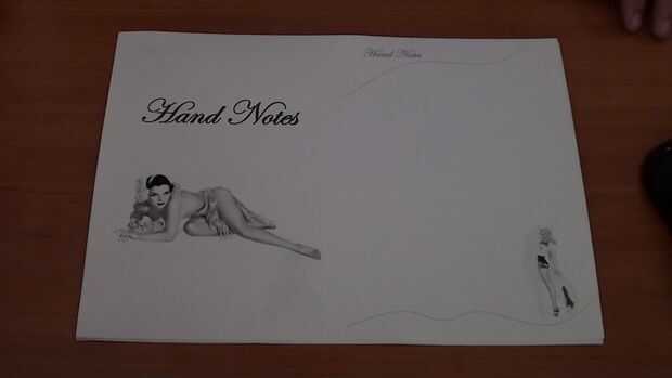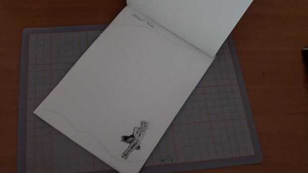En el diseño se debe crear una portada y al menos una página para las páginas de notas (se puede imprimir varias veces para tener una mirada profesional sobre el Bloc de notas). en mi ejemplo he utilizado diferentes páginas para el área de notas ya que encontré estas excelentes imágenes de pinup de Alberto Vargas (http://www.thepinupfiles.com/vargas1.html) y estaba fascinado con ellos así que he creado una plantilla básica para cada página con una imagen diferente de pinup.