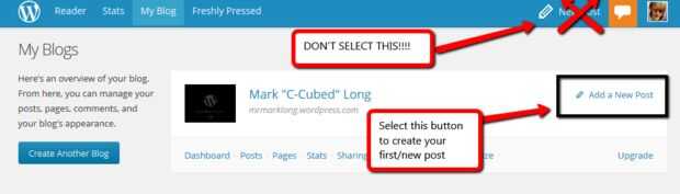 Seleccione la opción "Crear nuevo Post" a la derecha del nombre o título de tu blog para el editor del post completo.
