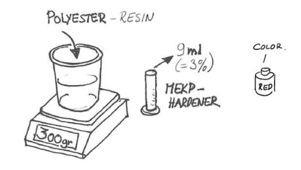 Mezclar 300grams de resina con 9ml de endurecedor (3%). También se puede añadir un color que te guste.