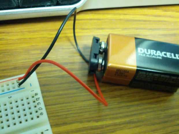 1) de la tira de una pequeña cantidad del aislamiento del cable desde el conector de la batería de 9V