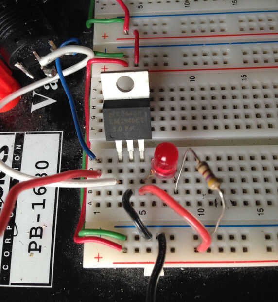 A continuación, permite configurar una potencia LED, para que sepamos si es activar o desactivar. Los diodos LED están polarizados, y todos sabemos lo que sucederá es que obtenemos las clavijas mezcladas, no... Ver la imagen para ver cómo puede ser breadboarded.