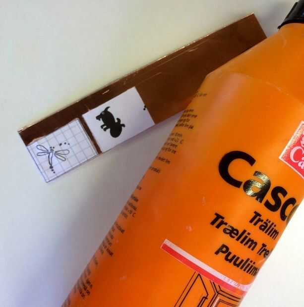 Pegar el diseño del copperplate con pegamento de madera. Esto hace fácil de quitar luego. Déjelo secar. Recortar la imagen con una tijeras.