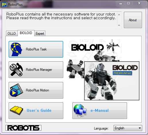 Para programar el controlador CM-530, se requiere el programa RoboPlus. Este programa puede encontrarse en la página web ROBOTIS, situado aquí.