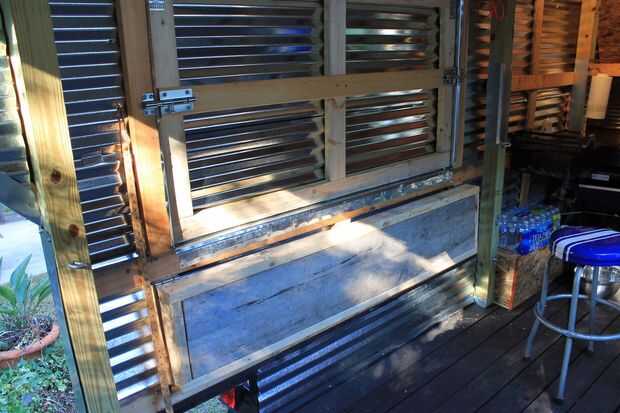 Primero hice algunas ventanas macizas de 2 x 4 y apartadero del metal. Fijarse en el marco de la ventana con resistente galvanizado bisagras. También puse cerraduras de perno de diapositiva en ellos para la seguridad al viajar y cuando no esté en uso.