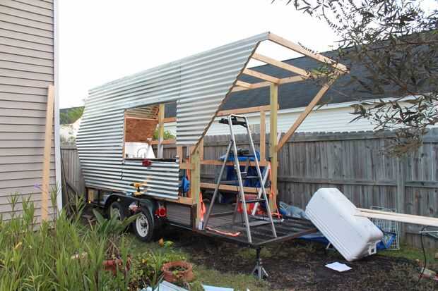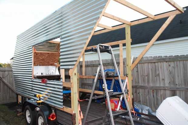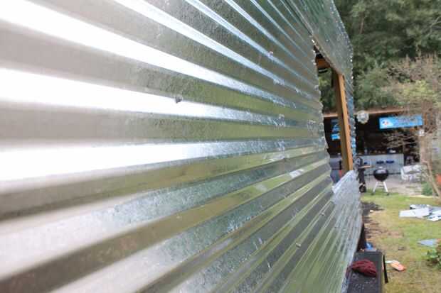 Añadir el revestimiento de metal fue divertido pero difícil hasta que usted consiga la caída de la misma. Conseguir un buen juego de tijeras de metal y usar Sólo SELF TAPPING METAL tornillos con arandelas de goma. Esto asegurará su remolque no escapará en el tiempo y se sella herméticamente. Y sí cuestan más pero a la larga salvará su remolque y algunos dolores de cabeza.