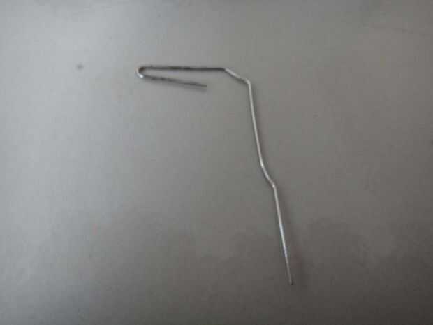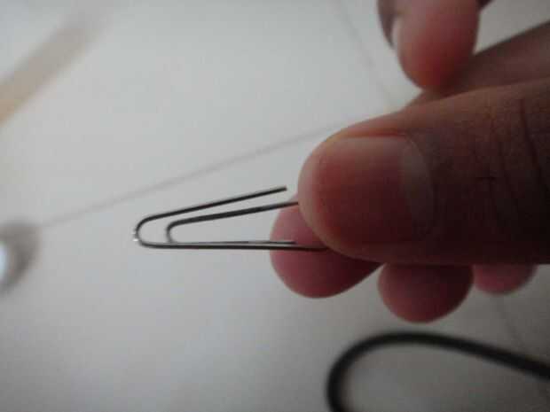 tomar el clip de papel y enderezar a dos de sus curvas.