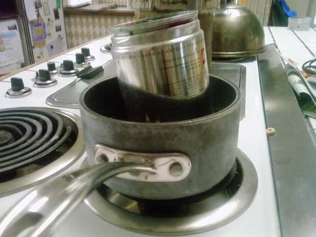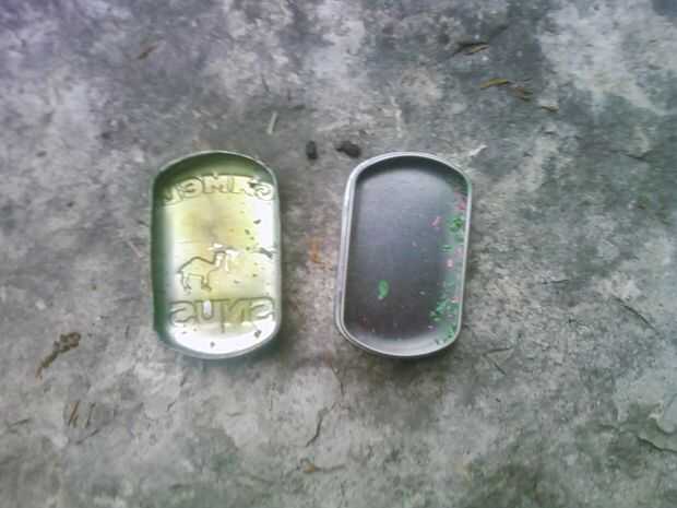 2. vaciar latas de metal. (SomArtMama recomienda pop latas con tapas de corte y doblado).