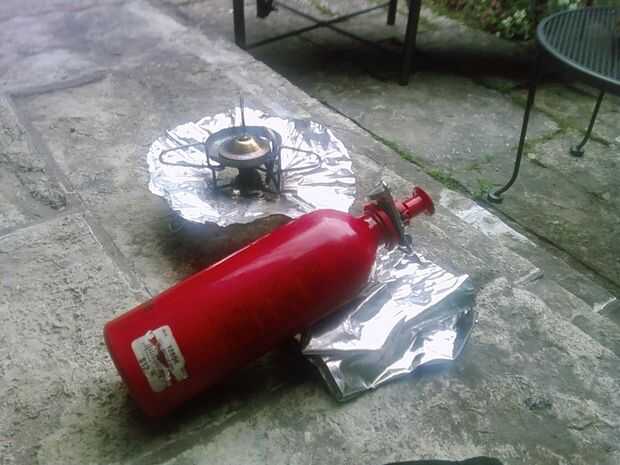 6. una estufa de camping con combustible.