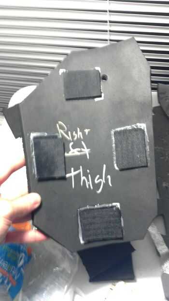 También es el velcro/gancho y método de bucle donde pegar piezas anchas de velcro a la armadura y coser o pegar las tiras en el traje por debajo de ella. Esto funciona bien para piezas más pequeñas pero pero sacrificas la sensación integral de lo contrario tendrías con el arnés. Recomiendo altamente que coser o coser el velcro a un pedazo de cinta de nylon o cualquier tela resistente. Pegamento caliente no agarre bien al Velcro por sí mismo. Si quiere coser a una sección de cinta o tela entonces tendrá algo para agarrar a.