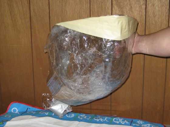 Cinta de embalaje es ideal para la construcción de la forma del traje, pero se ríe de pintura u otros revestimientos. Lo único que se adhiere a la cinta del embalaje es otra cinta, así que tenemos que encajonar todo en una capa de cinta adhesiva para que podemos pintar el traje y añadir cualquier toque final. Por lo tanto, salir unos rollos de cinta adhesiva y un reproductor de MP3 de gran capacidad y llegar a tapin'. Una vez más, tómese su tiempo para evitar las arrugas.