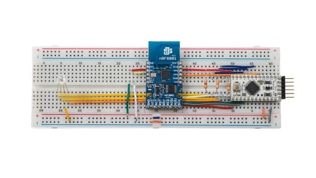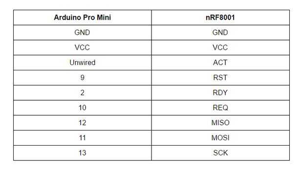 Siguen las fotos de arriba para conectar Arduino a la Junta de nRF8001 y el LED RGB.