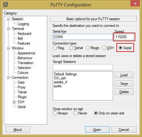 El software de Arduino no será capaz de subir cualquier código a la placa mientras que hay una conexión serial activa abierta, así que asegúrese de que usted salga de la terminal de serie cuando desea actualizar el código. No dude en guardar la configuración de PuTTY para hacer más fácil abrir rápidamente una conexión en serie.
