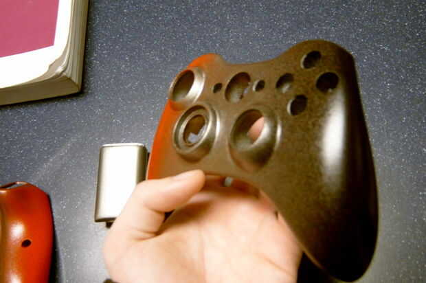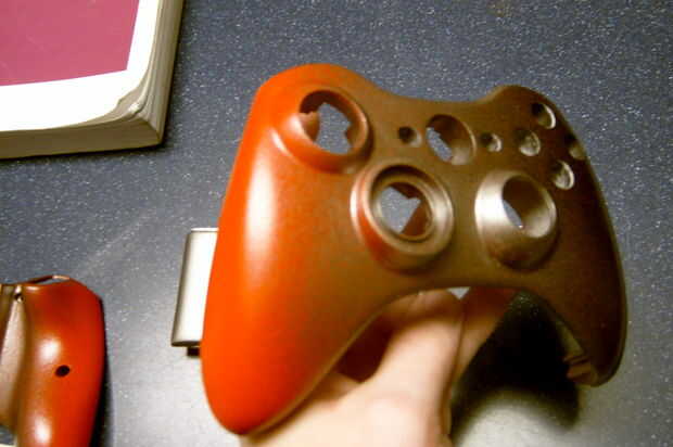 Hacer lo mismo con el rojo como lo hizo antes con el negro (Si utilizas más de un color) excepto con la cubierta rojo hasta el negro como cómo preparamos la mitad del controlador con el periódico, pero puesto que el negro es fresco dejar secar 3-5 minutos antes de la cubierta y no poner la cinta en la pintura , envuelva el periódico en el controlador y peque cinta adhesiva en la parte inferior del regulador (la parte que alberga la electrónica. y comienza la capa roja al igual que la parte negra. Después de que el rojo y el negro se pintan dejemos seca de 3 a 5 minutos luego retire el periódico y deje que se seque completamente (yo estoy dejándolo secar durante 7 días enteros evitar lo que ocurrió en mi primer intento).